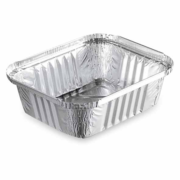 Barquette aluminium jetable refermable avec couvercle d’une contenance de 435 ml.