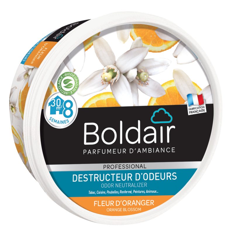Boldair gel destructeur d’odeurs est un destructeur d’odeurs permanent sous forme de gel solide.