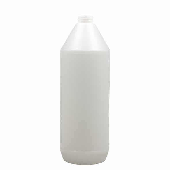Bouteille polyéthylène transparente d’une grande contenance de 1000 ml qui facilite l’étiquetage grâce à sa forme ronde.