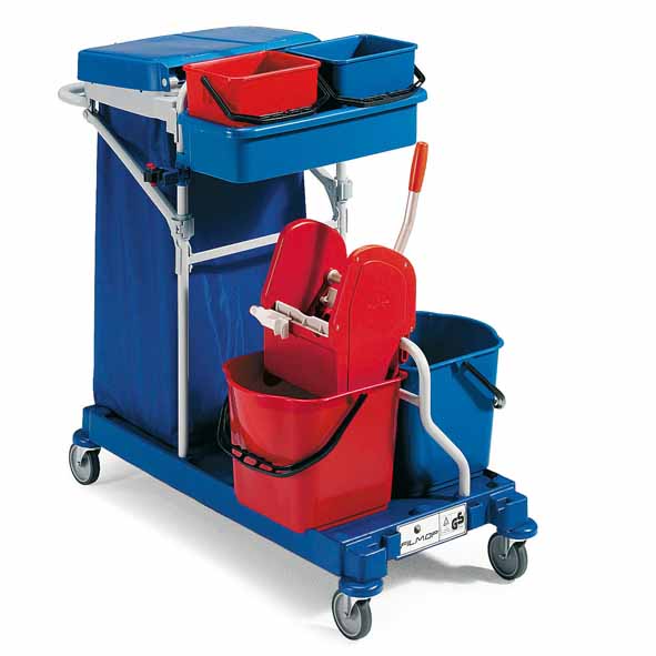 Chariot polyvalent, pour la collecte des déchets, le lavage des sols et le nettoyage des surfaces