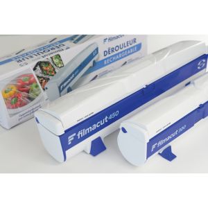 Dévidoir distributeur automatique pour rouleaux alu 20 ,30 ou 33 cm ainsi que pour des films alimentaires de 30 cm ou 45 cm.