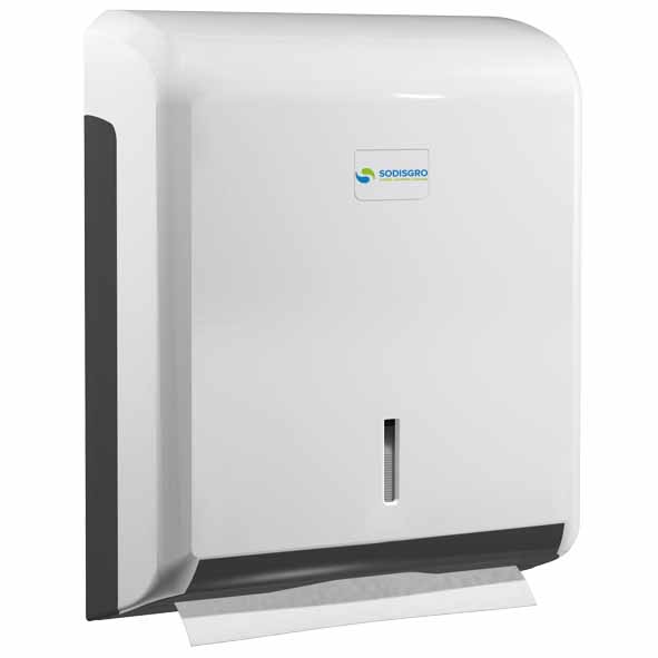 Distributeur Cleanline pour essuie mains un capot ABS blanc et un chassis ABS gris.