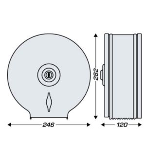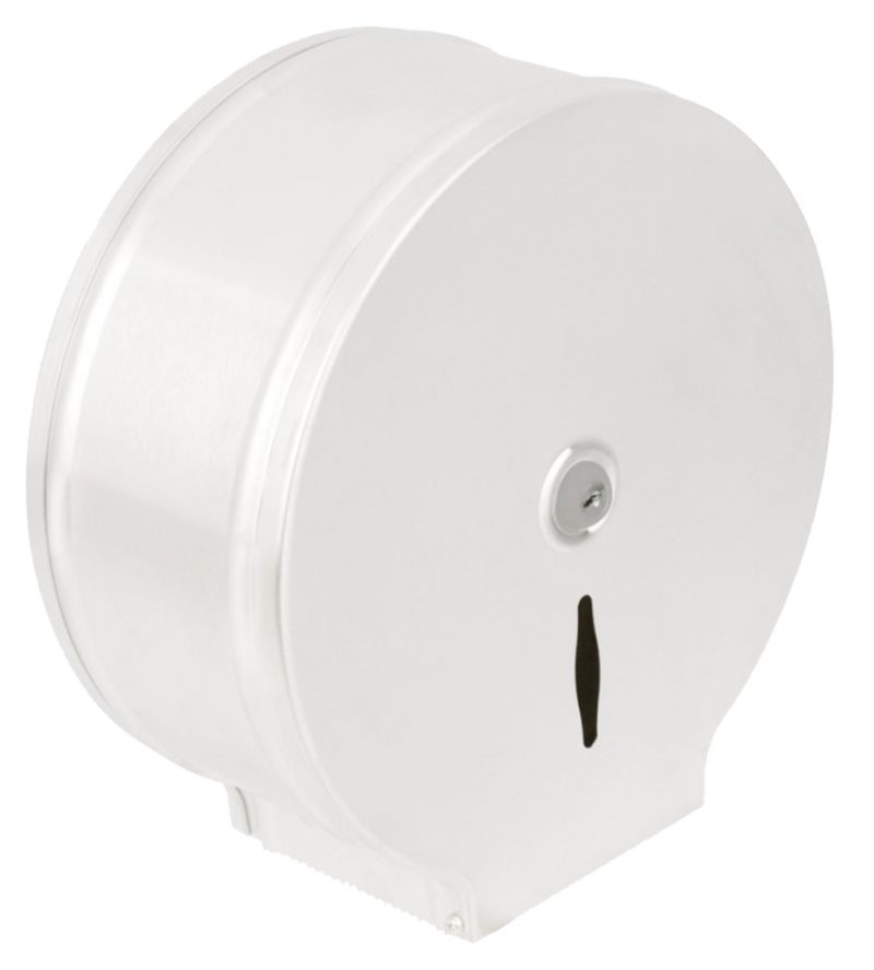 Distributeur papier hygiénique mini jumbo en métal blanc antivandalisme.