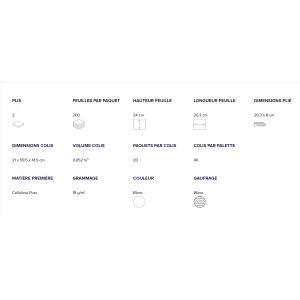 Fabriqués en cellulose 100 % pure, ces essuie-mains disposent de 2 plis avec un grammage de 19 g/m² par pli,