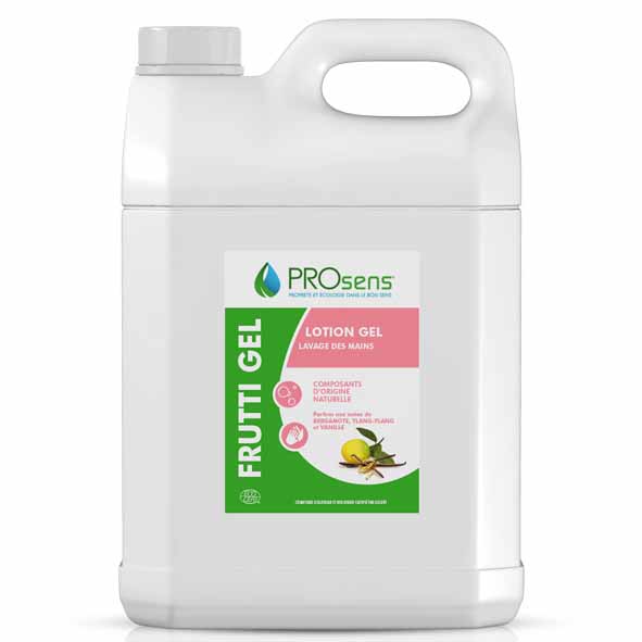 FRUTTI GEL, est une lotion gel Ecocert pour le lavage des mains aux parfums de bergamotte, ylang ylang et vanille.