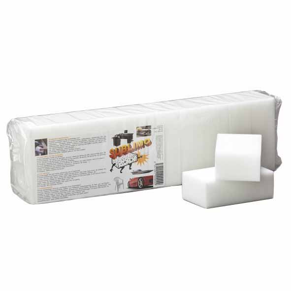 La Sublimo éponge magique en melamine élimine les traces de semelles, de stylo, efface les tâches de café, d’empreintes sales, de tartre, d’huile ou de graisse avec efficacité sur les murs peints, les stratifiés, les plinthes, les meubles, les portes, les sanitaires, les tableaux, les fenêtres, meubles de jardin, le bois, …