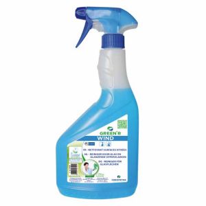 GREEN’R WIND est un nettoyant écologique prêt à l’emploi. Il est destiné au nettoyage des surfaces vitrées, brillantes, modernes, strati?ées y compris en milieu alimentaire.