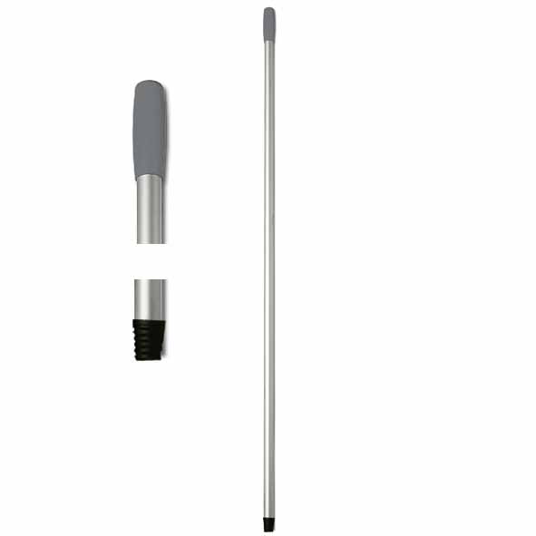 Le manche en aluminium fileté a un embout à vis qui s’adapte à la majorité de nos balais, lave-ponts etc…