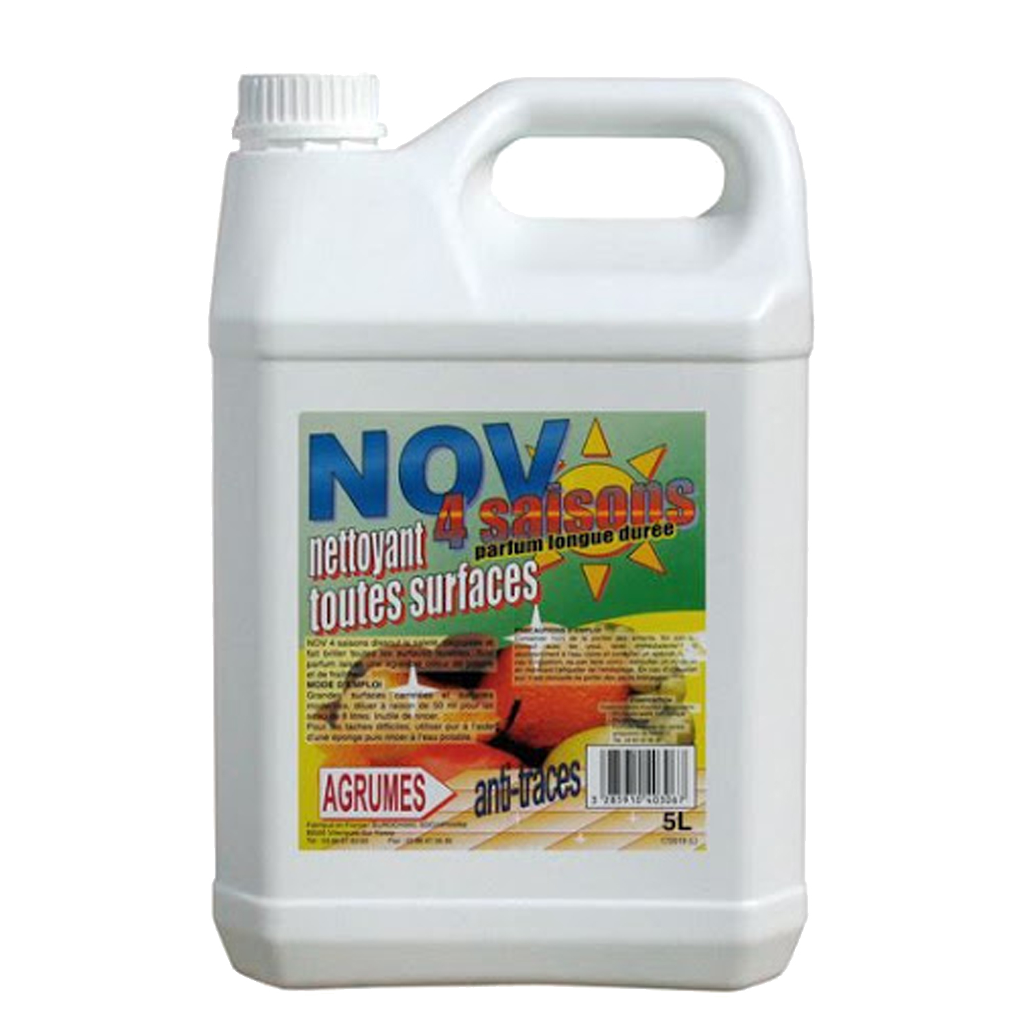 NOV’4 SAISONS AGRUMES, est un nettoyant multi surfaces qui dissout la saleté, dégraisse et fait briller.