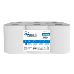 Colis de 12 rouleaux de papier toilette en bobine à dévidage central feuille à feuille. (Centrefeed)