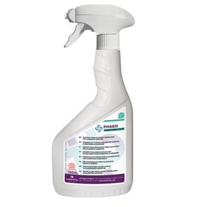 – Le PHAGO’SPRAY DASR est un désinfectant hydroalcoolique pour la désinfection des surfaces, des équipements et des mobiliers propres. Ne laisse pas de traces sur les surfaces.