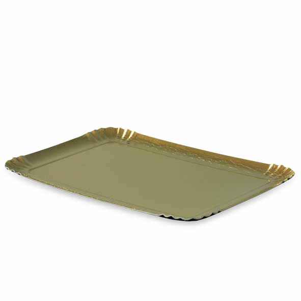 Plateau traiteur de couleur or 19×28 cm. Fabriqué en carton et recouvert d’une fine couche en plastique PET, ces socles de transport conçus spécialement pour traiteurs sont idéals pour la présentation et mise en valeur de petites portions gustatives.