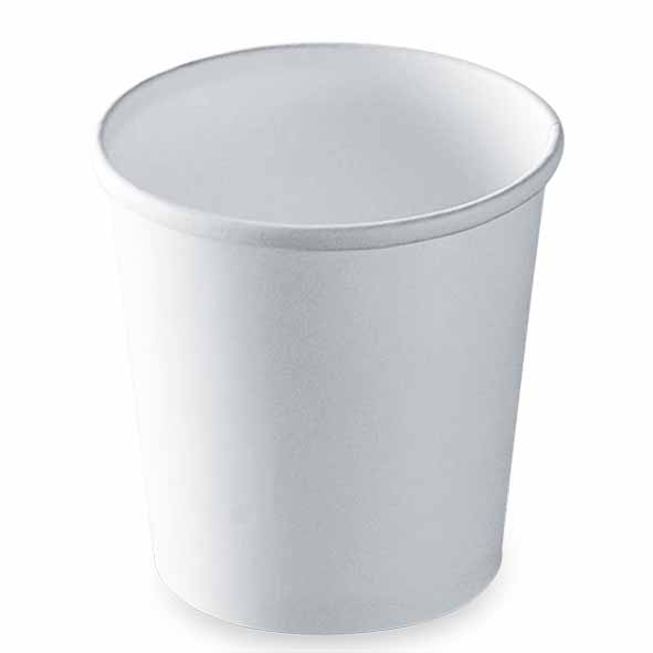 Pot à soupe, ou à crème, à sauce ou à glace en carton blanc apte au contact alimentaire direct d’une contenance de 473 ml.