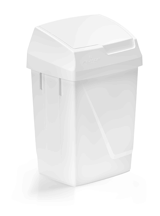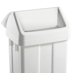 Poubelle avec couvercle basculant blanc.