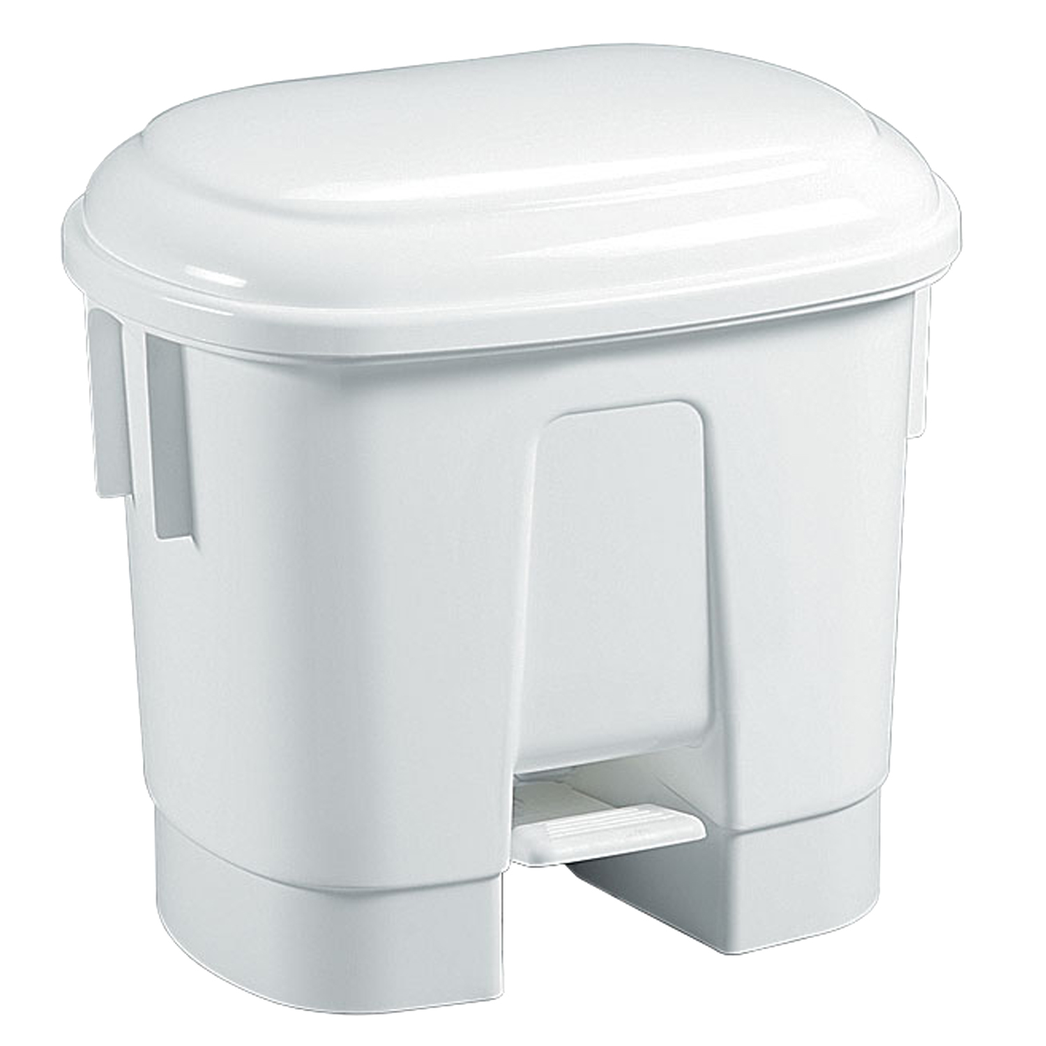 Poubelle 30 L en polypropylène blanc, avec pédale, anneau de maintien du sac et couvercle.