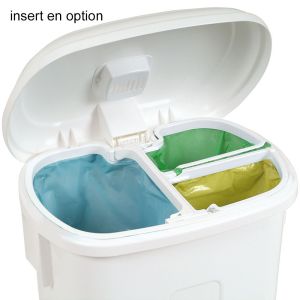 En option : Possibilité d’ajouter un insert simple ou triple pour obtenir deux ou trois zones pour le tri sélectif des déchets.