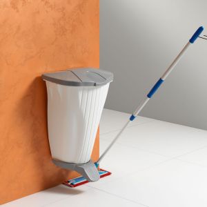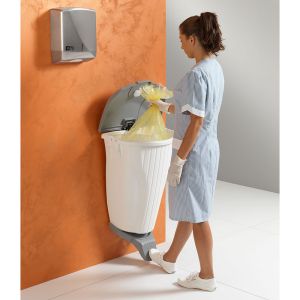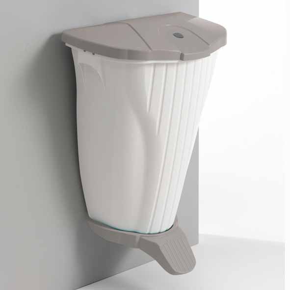 Container mural 100% polypropylène blanc 50 lt avec pédale et couvercle gris.
