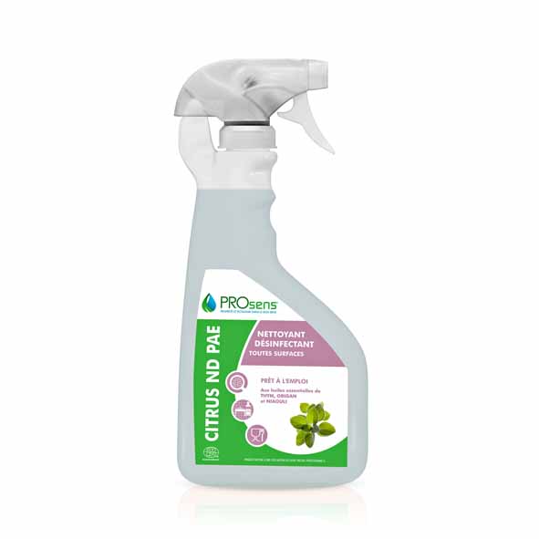 CITRUS ND+ SURFACES, est un nettoyant désinfectant écologique Ecocert prêt à l’emploi pour toutes surfaces.