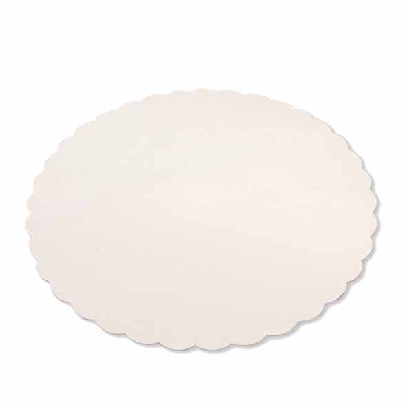 Rond rigide blanc avec bord festonné d’un diamètre de 30 cm pour la présentation de vos tartes et gâteaux.