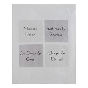 Shampooing et gel douche 2 en 1 sous sachet individuel de 7 ml.