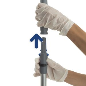 Le support peut être utilisé soit avec des bandeaux à scratch soit avec des gazes et des bandeaux à usage unique, selon les besoins spécifiques, pour le balayage humide, le lavage et la désinfection des sols.
