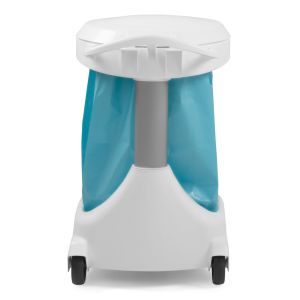 Le chariot support-sac en plastique Delta se caractérise par une ligne douce et arrondie et une surface lisse pour permettre un nettoyage pratique et rapide.