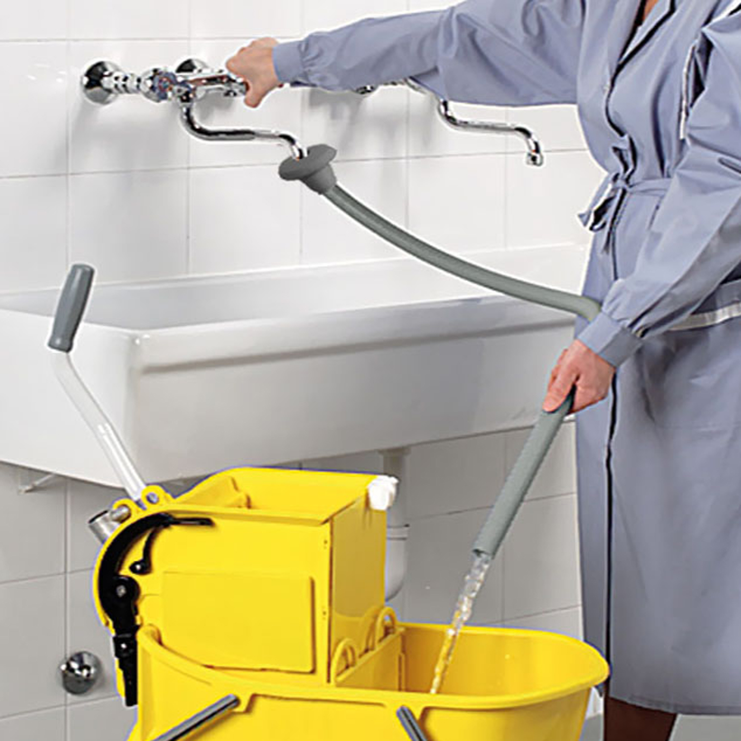 Permet de remplir facilement le seau avec de l’eau du robinet, sans avoir à le soulever.